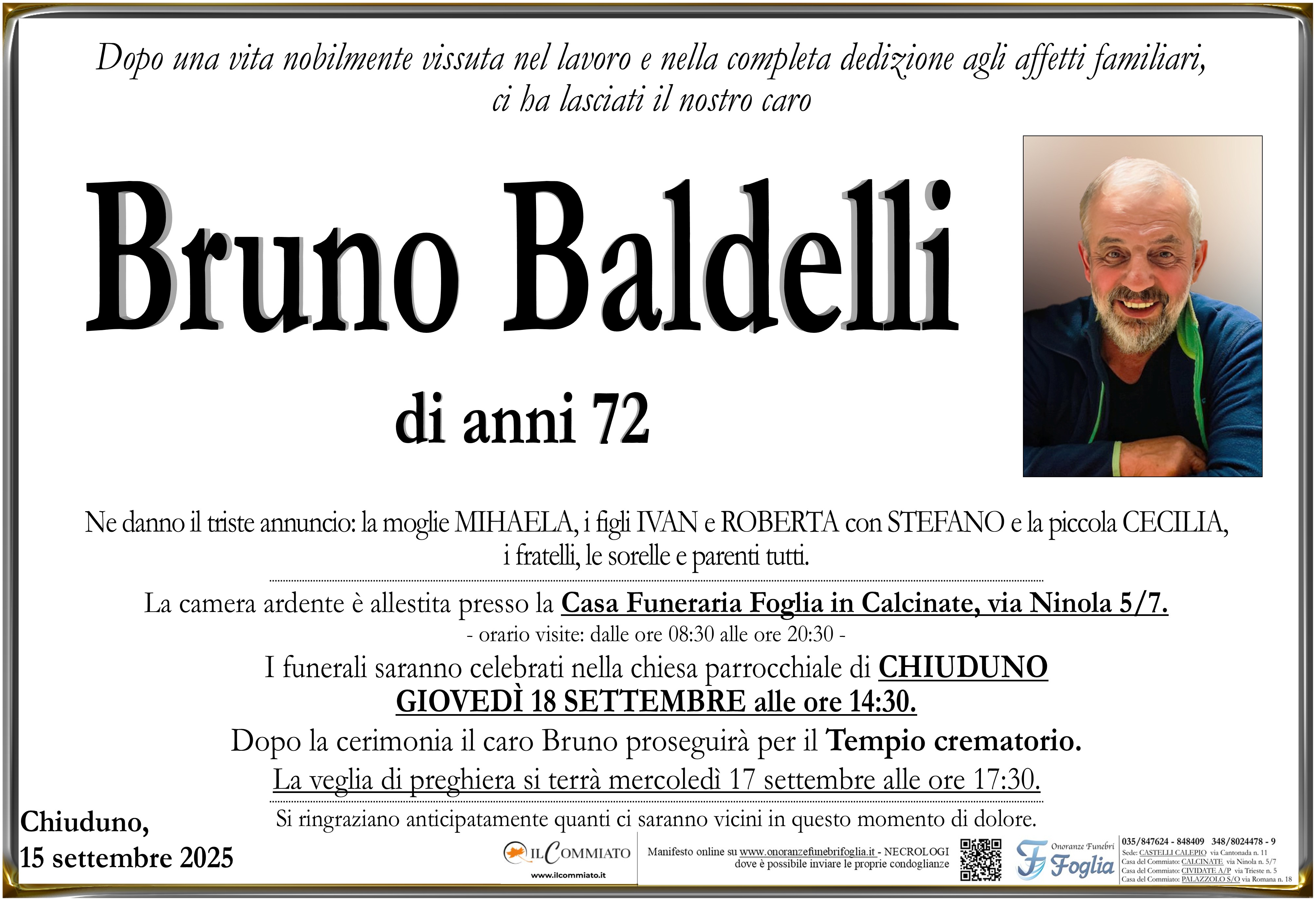 Dopo la cerimonia il caro Bruno proseguirà per il Tempio crematorio.