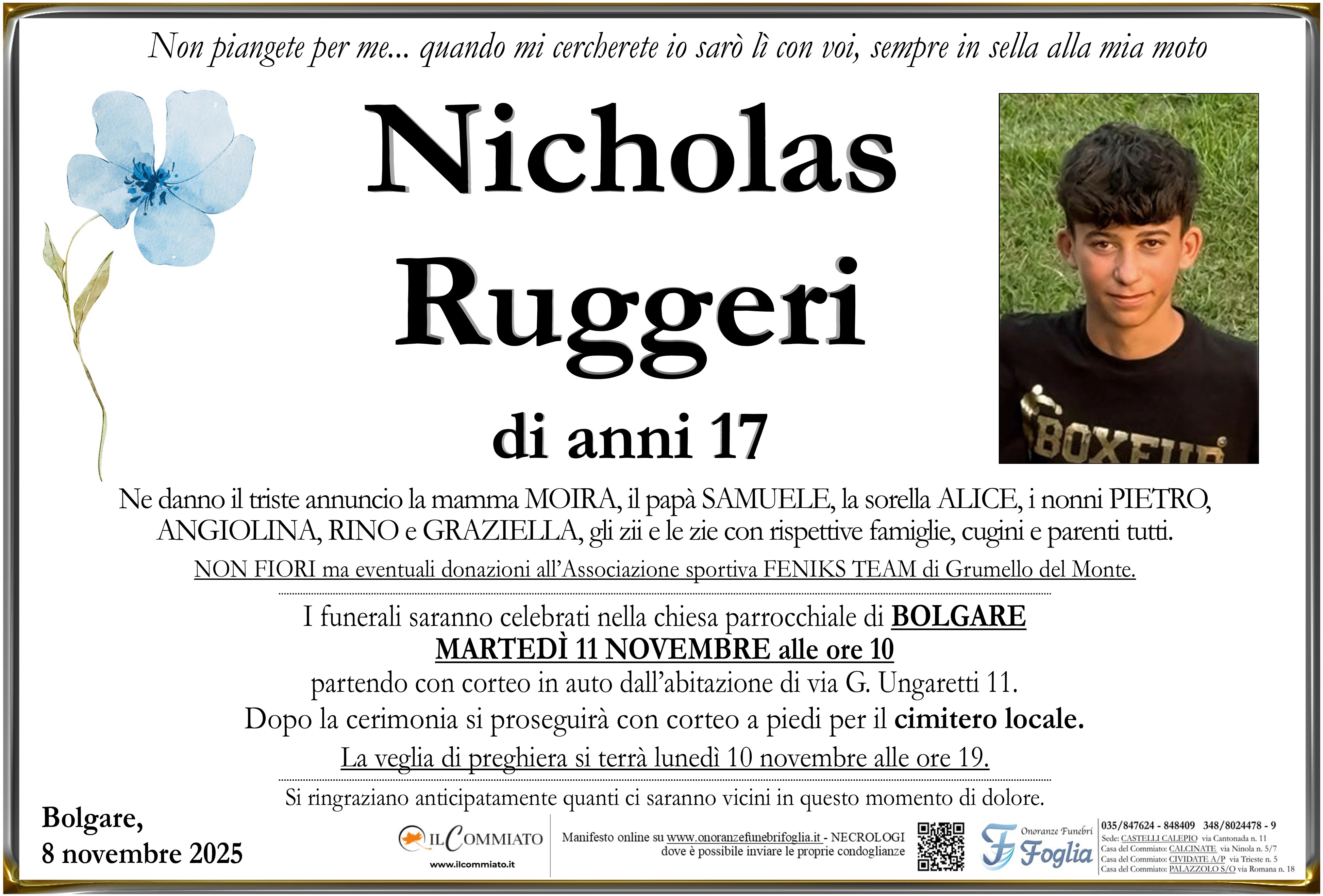 I funerali saranno celebrati nella chiesa parrocchiale di BOLGARE MARTEDÌ 11 NOVEMBRE alle ore 10