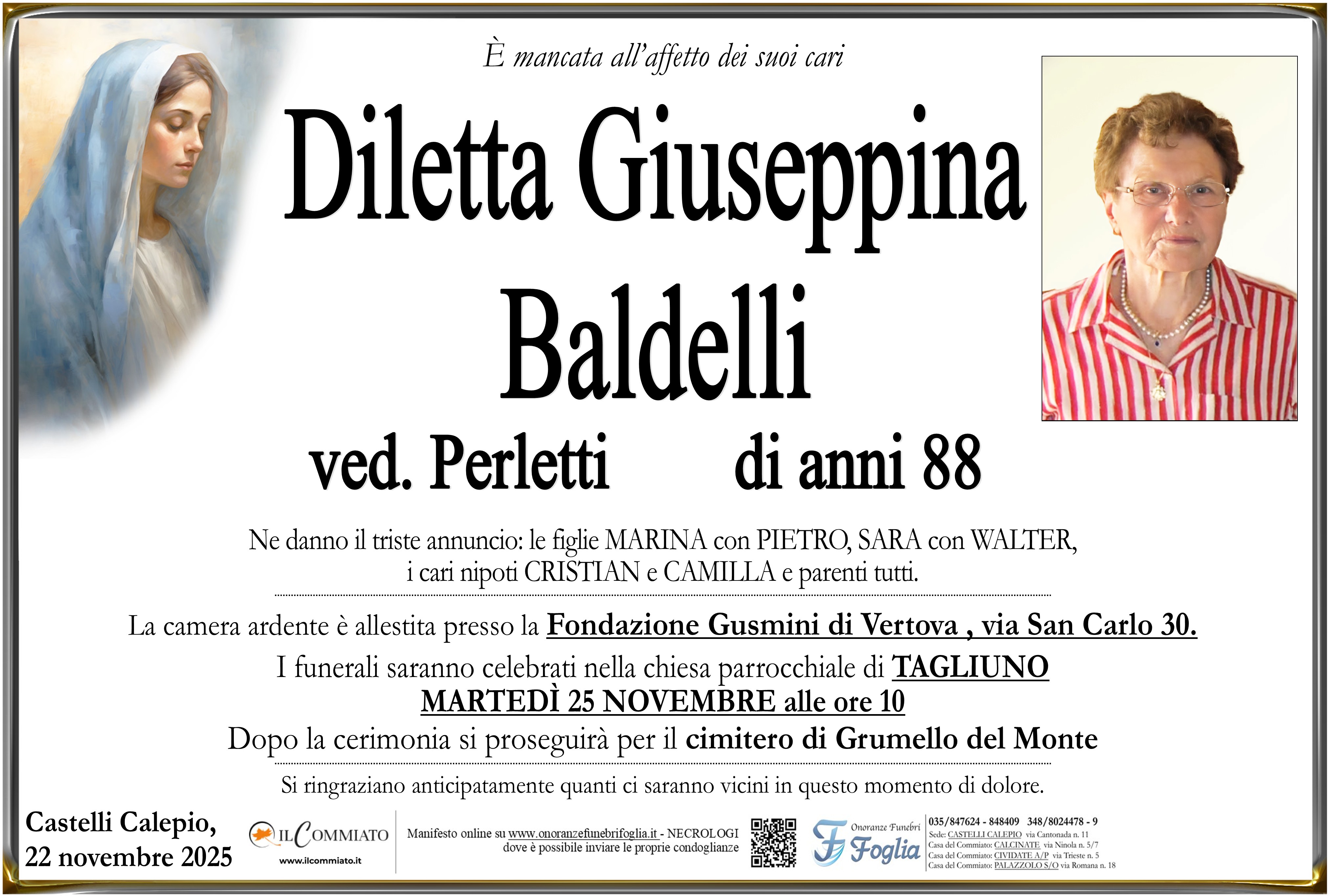 I funerali saranno celebrati nella chiesa parrocchiale di TAGLIUNO